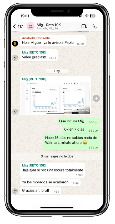 No estás solo en este camino. Tendrás acceso a sesiones en vivo cada 15 días, donde resolveremos tus dudas con expertos; estarás rodeado de otros vendedores que también están construyendo desde cero; y tendrás soporte para evitar los errores que nosotros ya conocemos y hemos vivido.